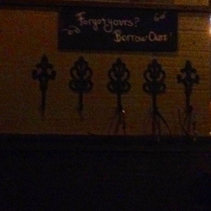 At Margarita’s near Bartlett, NH we spotted this neat sign. I don’t know if you can see in the dark picture but it reads “Forgot yours? Borrow ours!” with glasses hanging underneath. Perfect for the uncle who’s embarrassed to carry his glasses with him…