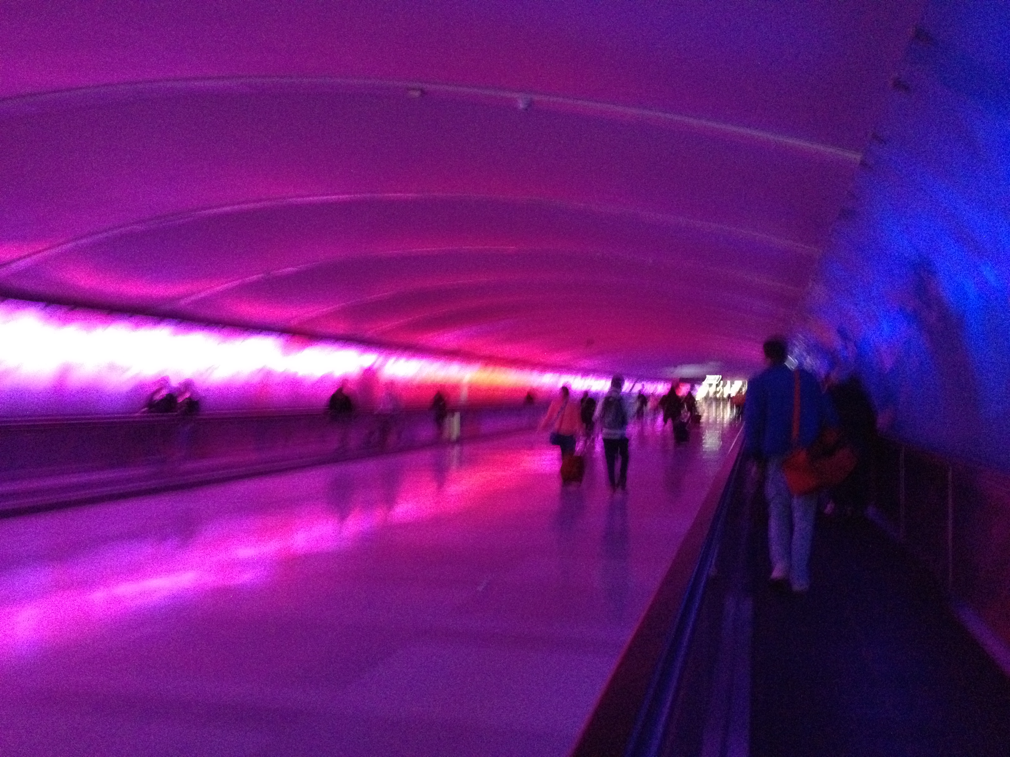 I slept for much of the 2.5 hour flight and pretty soon we landed in Detriot. The Detriot Airport is pretty cool and I got to walk through the famed colored tunnel to get to my next plane.