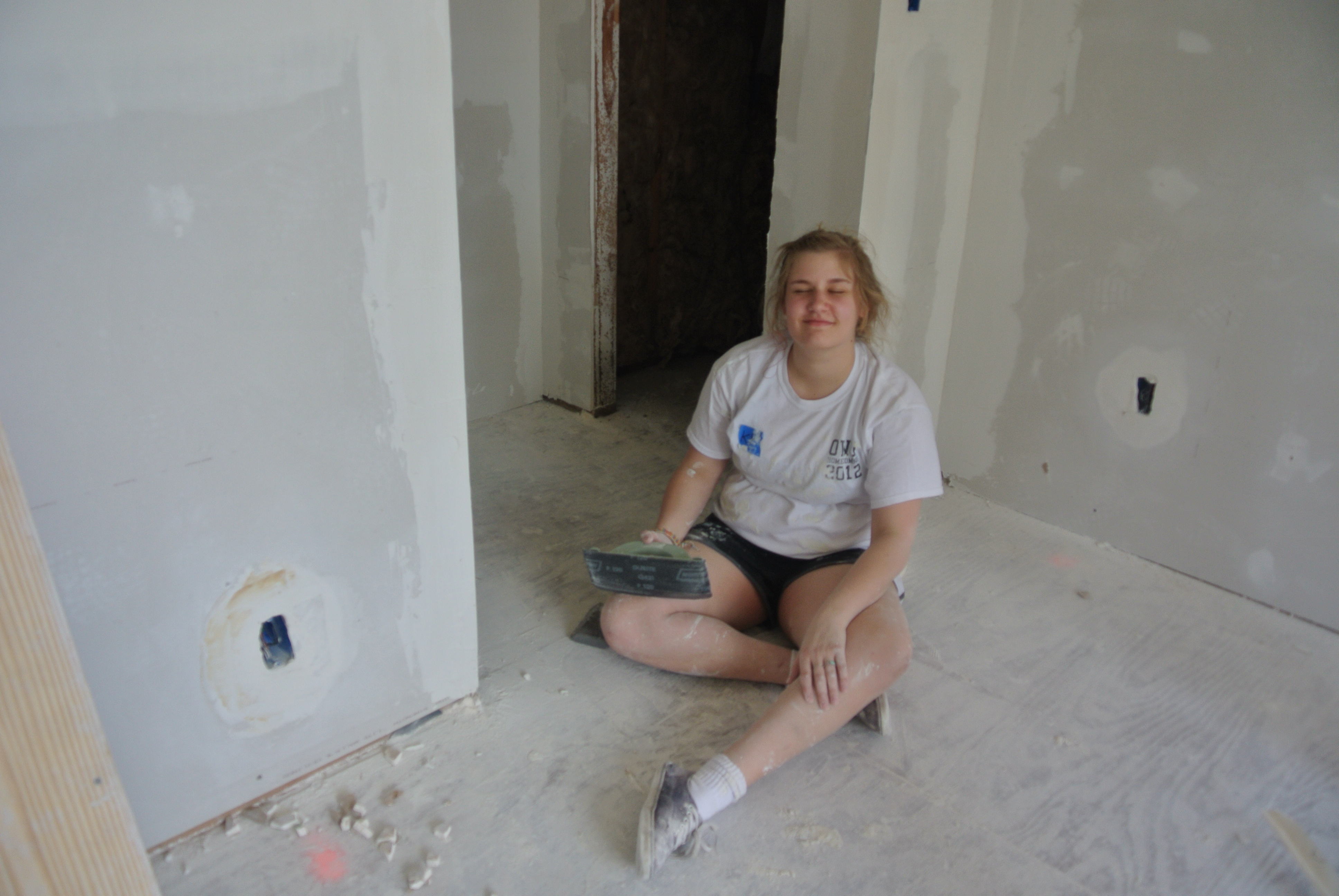 Her son, Regis, worked with us at the house today as we mudded the seams in the drywall. We met all sorts of wonderful people working on the house: two older women from the area who’d given their memorial day to help out, a couple of women in their 20s from Boston, and a man who comes down ever few months from Baltimore to volunteer. It was a rag-tag group on this first day of Women’s Week, but it’s always inspiring to see all sorts of different people committed to service.