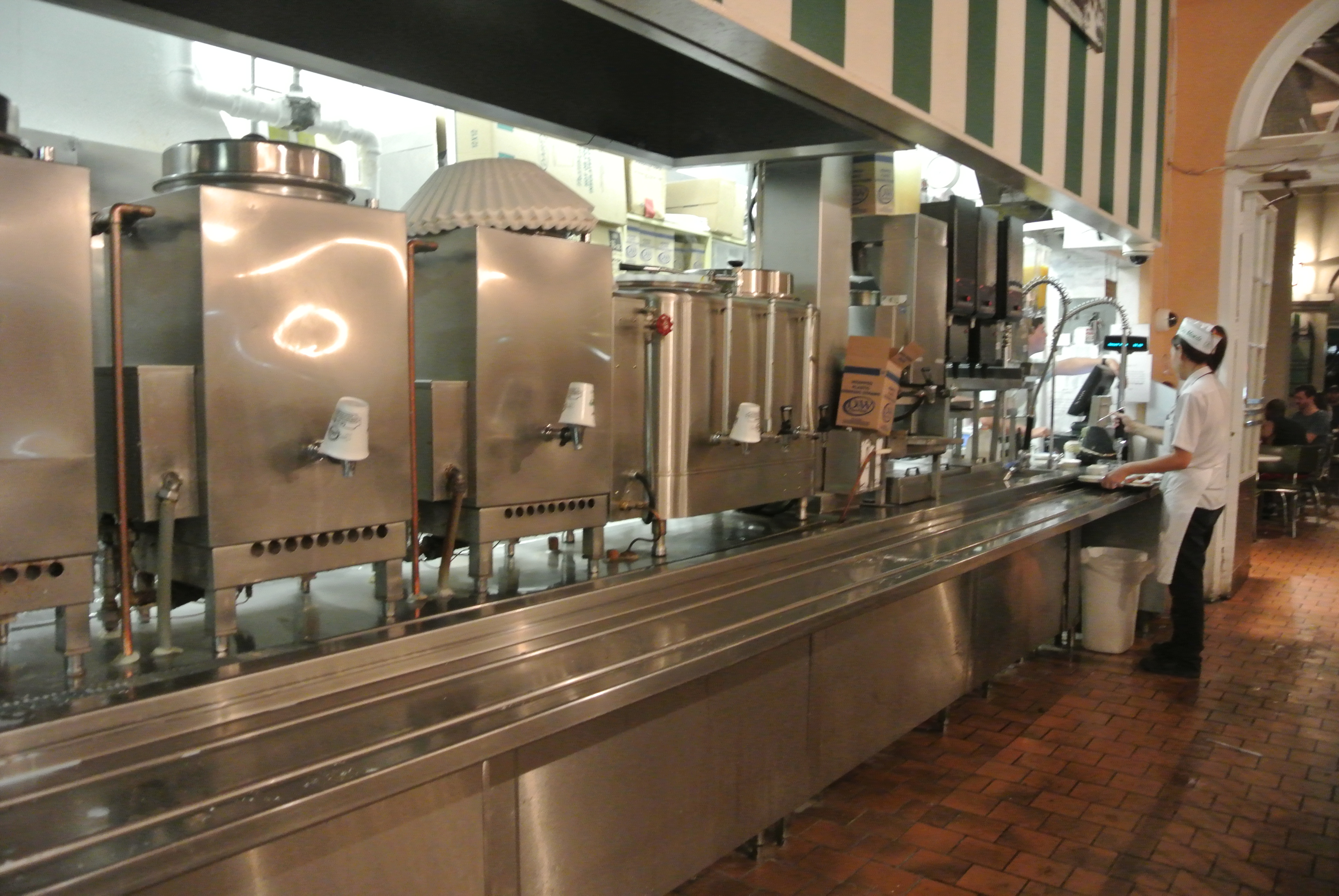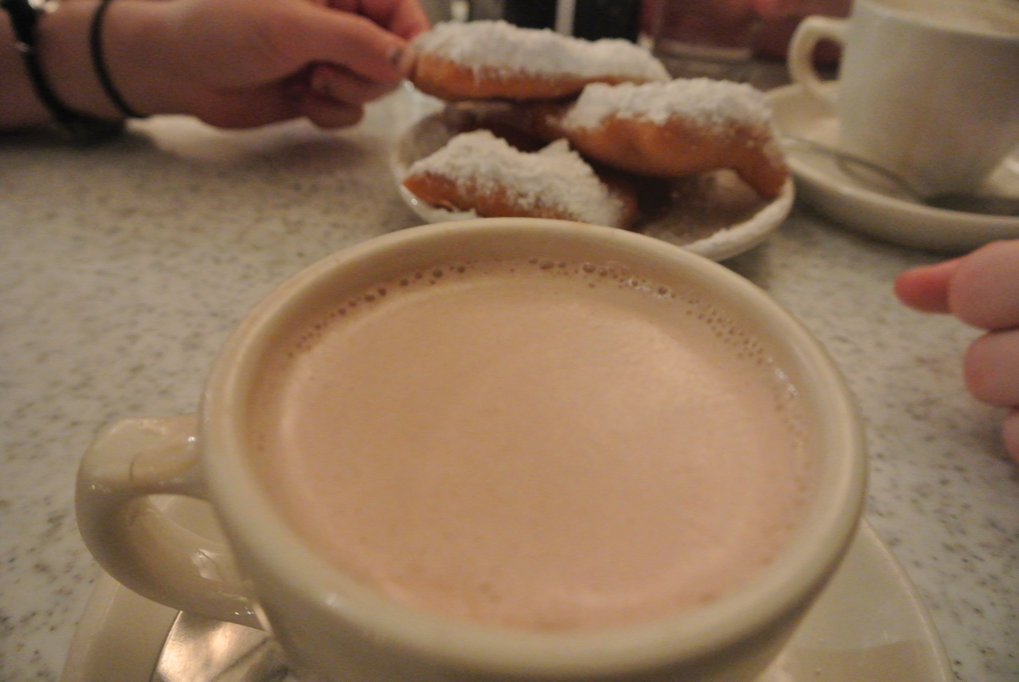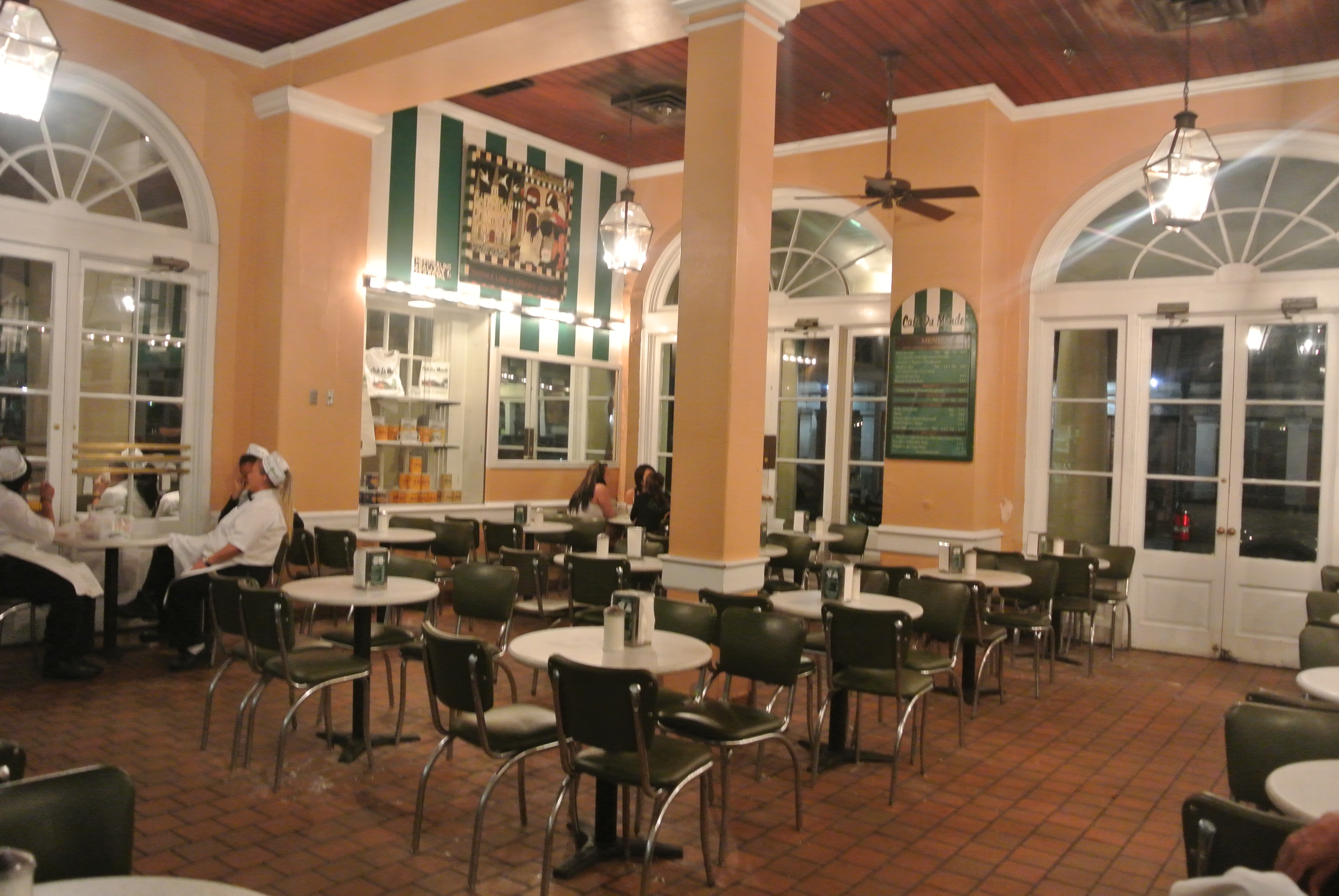 I don’t think much explanation is needed here. If you go to New Orleans you should stop at Cafe du Monde at the end of the evening. Notice how the servers have to pay cash every time they go up to get a customers order–you are reimbursing them at after the fact with your payment. (They don’t take credit cards here so make sure you’ve got plenty of dollar bills before you go). The cafe au lait and beignets are the most popular menu items, but I’ve always really loved the hot chocolate.