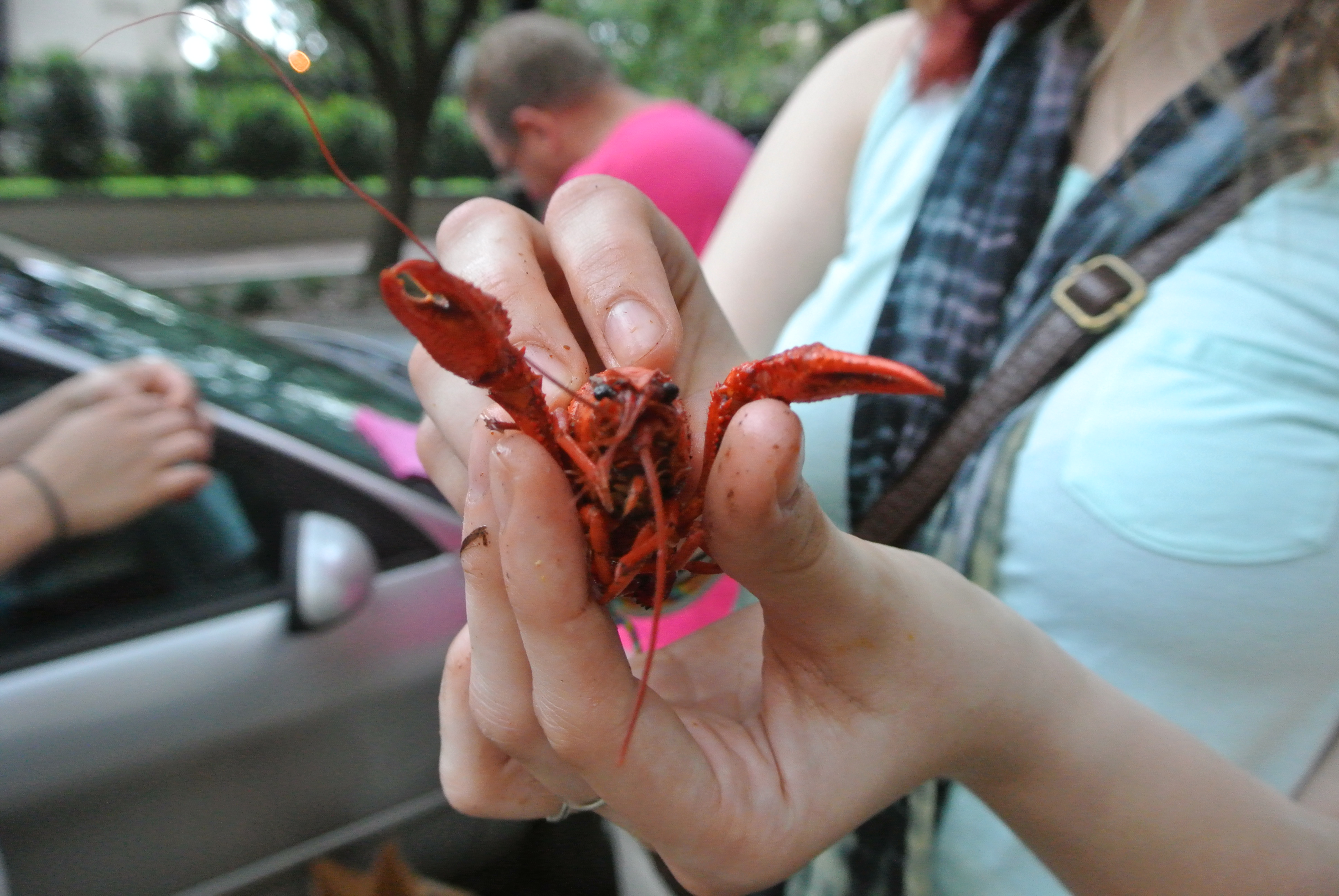 On one of our last evenings our volunteer coordinator, Tim, brought up a pound and a half of crawfish to try. We were all gathered at a beautiful house in Uptown for the Women’s Week “Hammers to Heels” party and ducked out when we had a moment to taste fresh New Orleans crawfish. As the bad Bostonian that I am, I didn’t try any (I don’t really like seafood that much…I know, you’re cringing now), but it did free up my hands to take these pictures. From what I could tell, it’s a pretty complicated process–eating crawfish–but Fig and KP loved it!