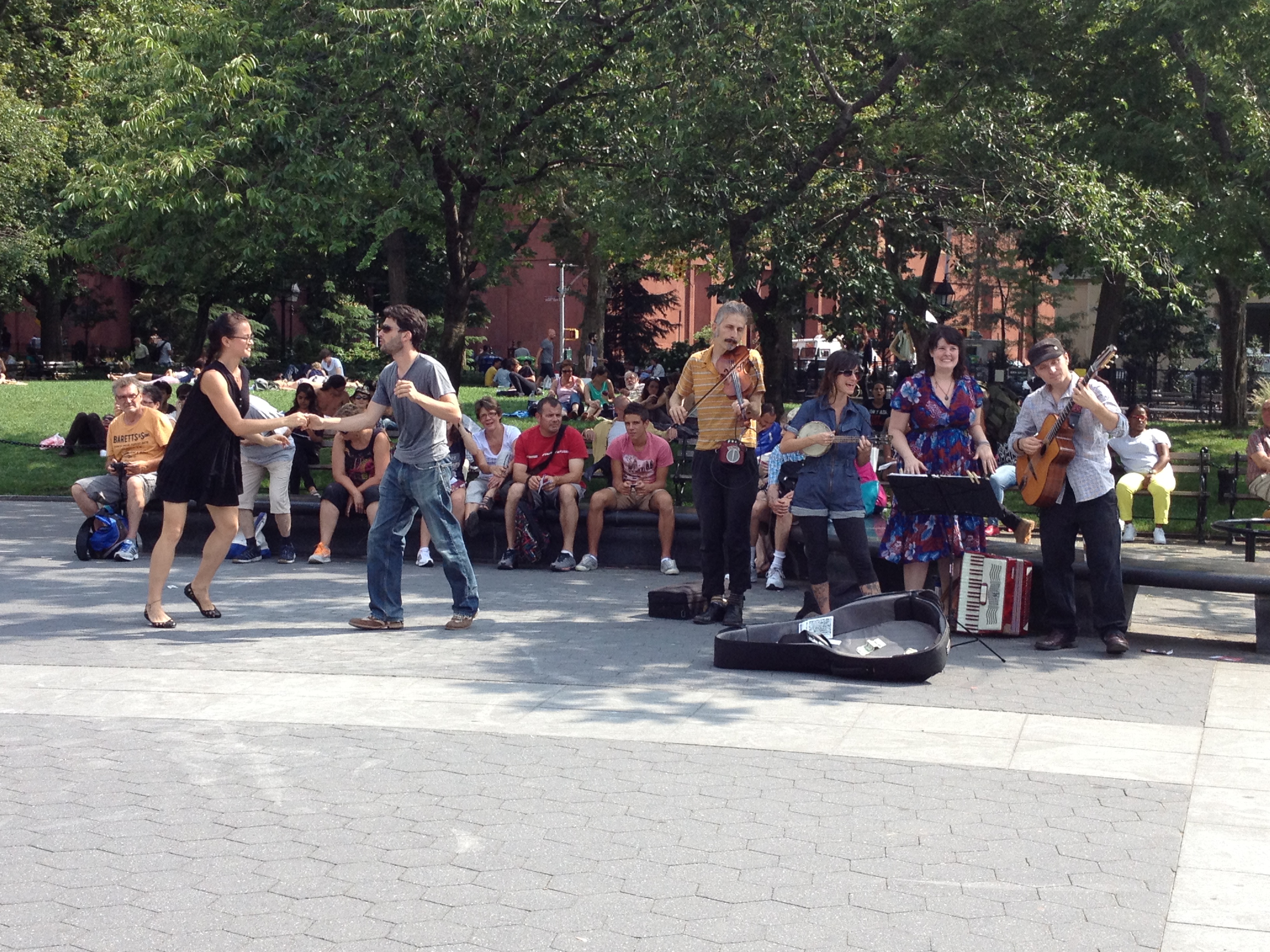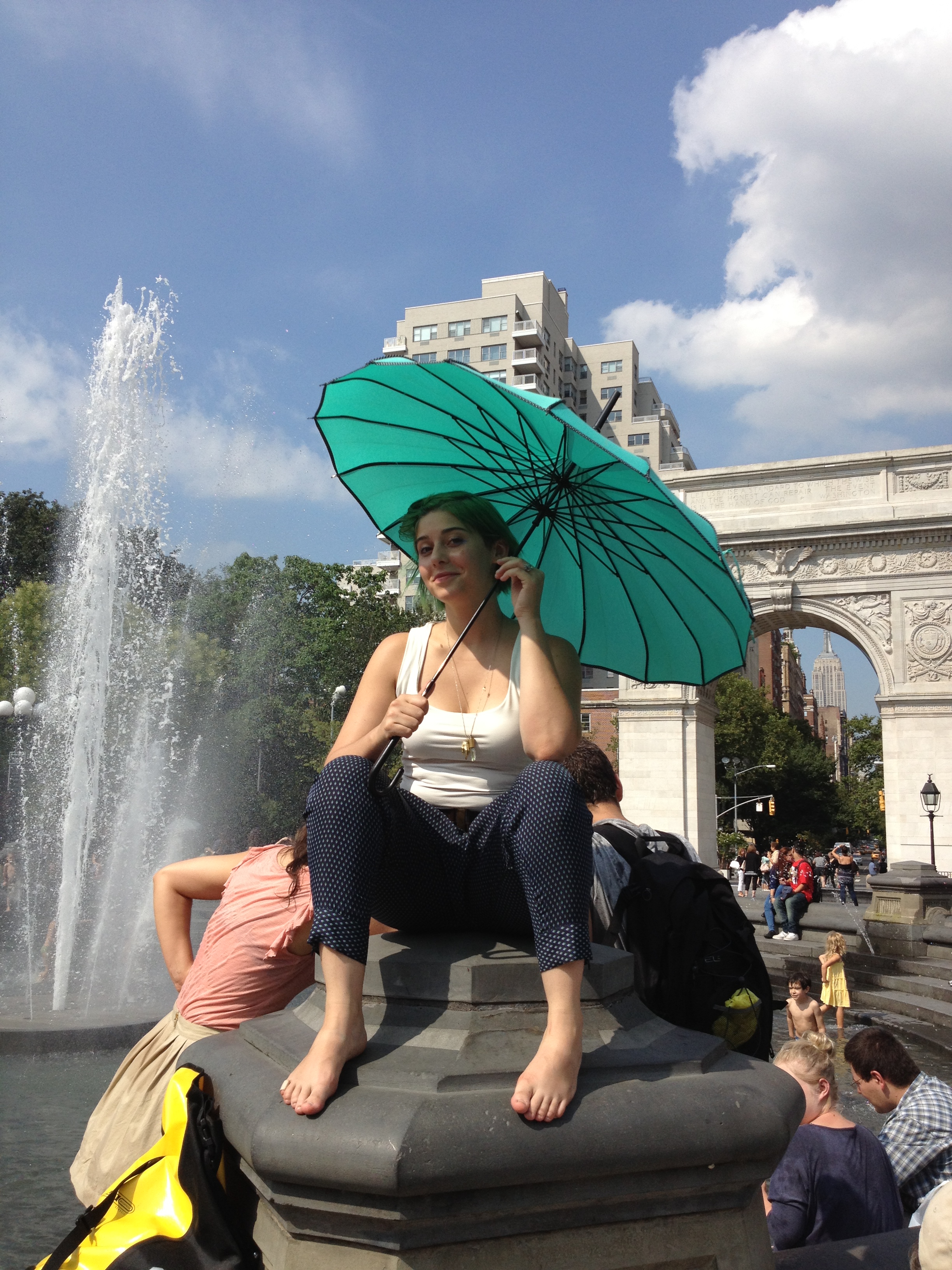 A beautiful green parasol in Washington Park on a sunny day.