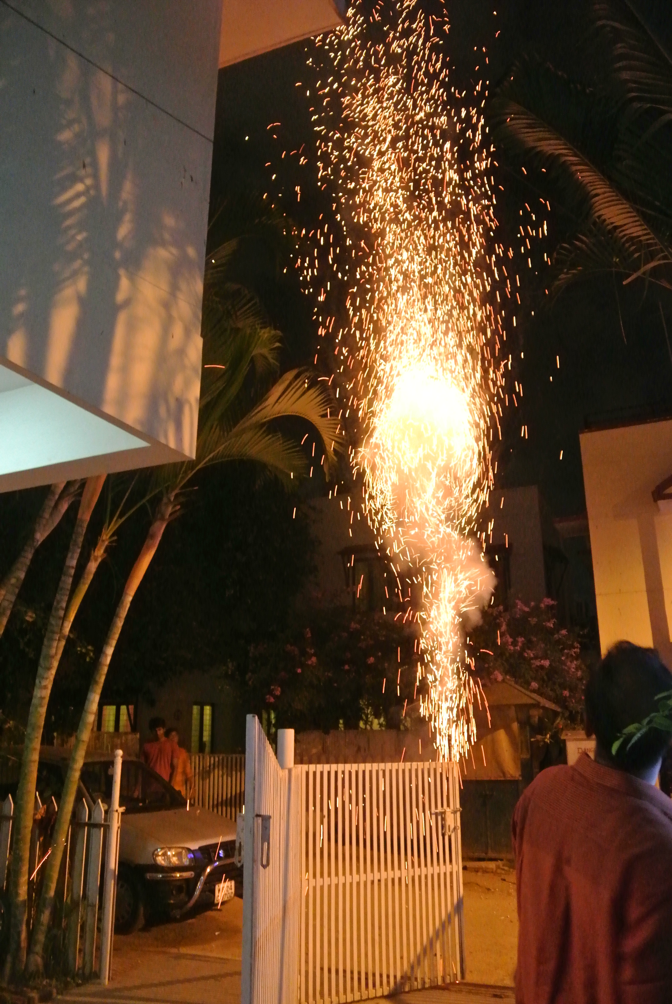 In Massachusetts, we can’t even purchase fireworks much less set them off in public places, so it took me a bit by surprise when the first firecracker was placed in the center of the street and the boys lit it, the match only a couple feet from their faces. As soon as a cracker was lit, they would bolt in the opposite direction to avoid the blast. Occasionally they would have to wave at an approaching car or motorbike to wait until the firework exploded.