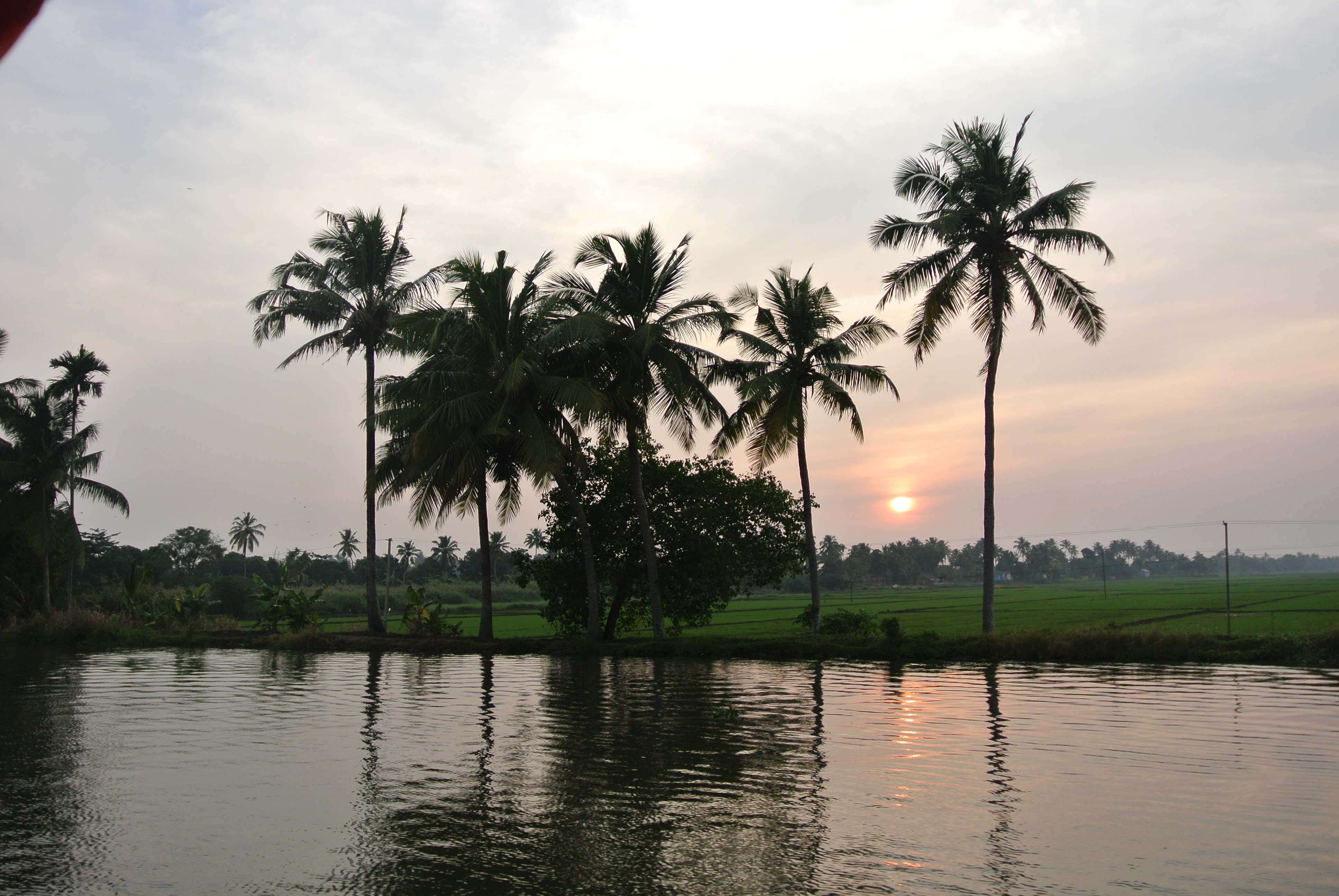 After our stay in Bangalore, three of us boarded a plane to Kerala where we met up with three other ACM students for a houseboat cruise. Few places in the world can boast the perfect temperature and Bangalore was definitely one of them. Just a little breezy, warm enough to wear a sleeveless kurta but cool enough for a sweatshirt. Stepping off the plane into Kerala was like stepping into a sauna compared to Bangalore. Muggy, sticky and warm with a beautifully bright sun beating down on us.