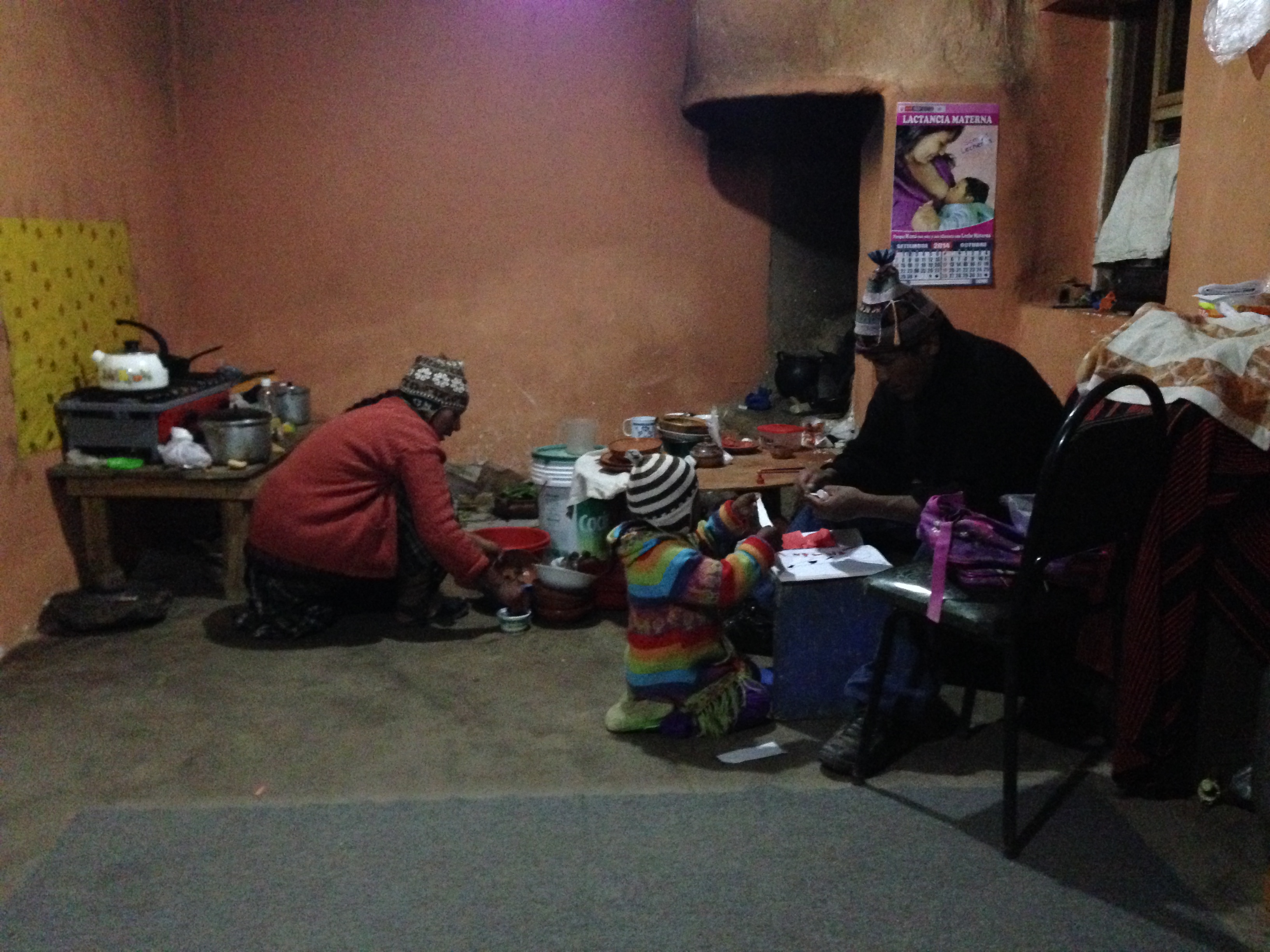 In the evening, we returned home to Mama Junta, Adolpho and Tanya. We warmed up around the stove and ate a delicious meal of potatoes and quinoa soup that Mama cooked us. When we were finished eating, we sat at the table as the small family went about their nightly routine. Mama Junta expertly cooked on the stove, occasionally blowing through a hollow stick to stoke the fire, absent-mindedly taking about her day or her friends or her hopes in Quechua. Her husband, Adolpho, listened diligently, nodding and occasionally looking up. Every so often he would ask a question or two. He divided his time between this and helping Tanya with her homework. Seated on the ground in front of him, he helped her to glue colored papers onto a page. He was patient with her never getting angry or frustrated by her distractions. He pulled her up onto his lap and laughed with her. From the beyond the window it must have looked more like playing than homework. When Tanya got hungry Mama Junta patiently put more food on her plate. When she packed up her backpack and walked out the door, they smiled and played along. A few minutes later, Adolpho went out to get her and we could see her swinging her up and down as she laughed in the cool night air.